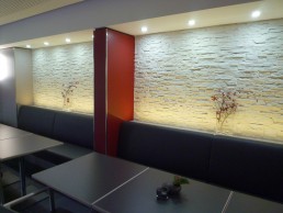 Die Fischer Steindesign Wände sind durch ihre Bauweise und die spezielle Fertigung auch individuell beleuchtbar.